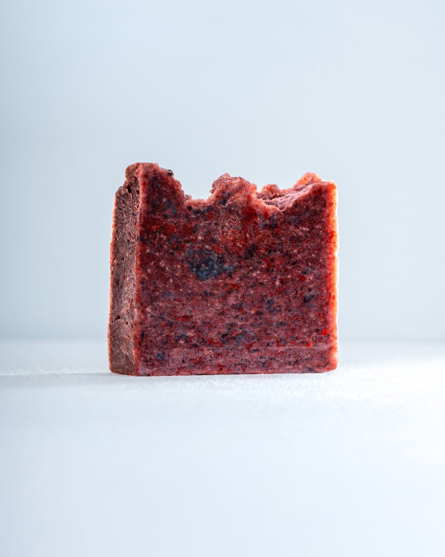 Kokosolie*, olijfolie*, sheaboter*, zoete amandelolie*, druivenpitolie, ricinusolie*, cranberry*, bosbes*, parfum, oxiderood, roze ultramarijn, limoneen.
